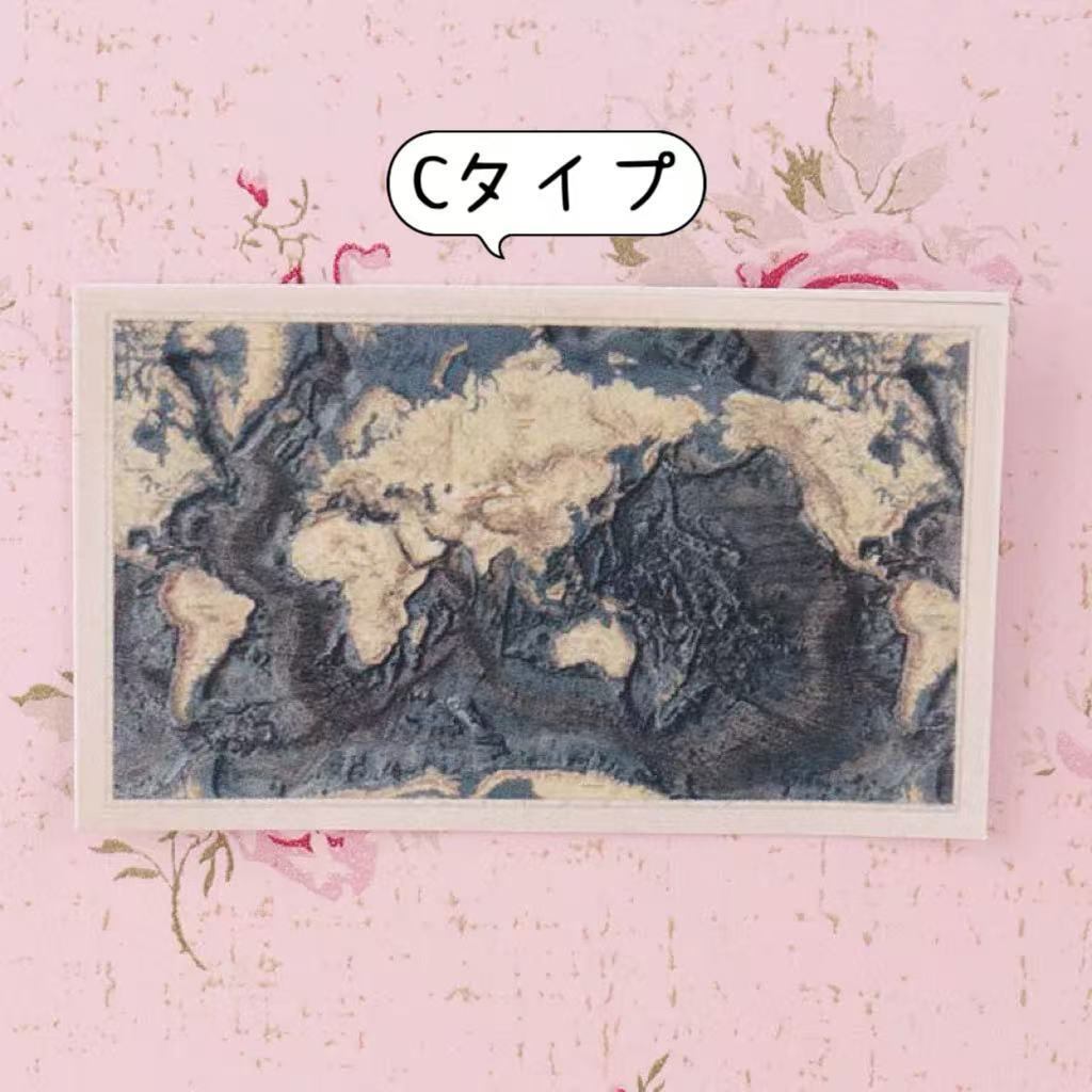 ミニチュア ワールドマップ 1枚 全4種類 ドールハウスアクセサリー 装飾用アイテム 壁掛け地図 インテリアデコレーション