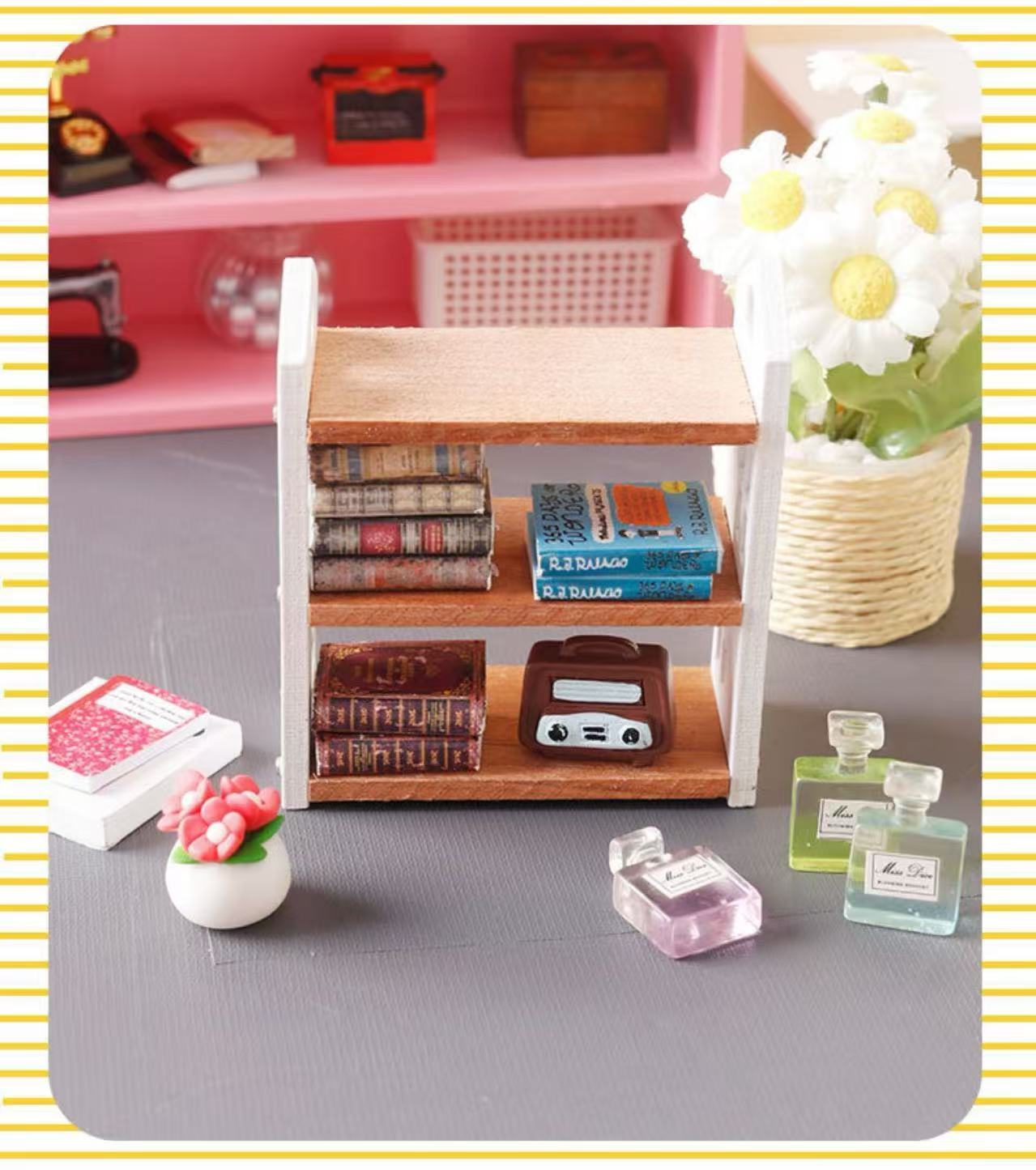 ドールハウス ミニチュア マガジンラック 1点 棚 書類棚 本棚 収納ボックス ホワイト 1/12 家具