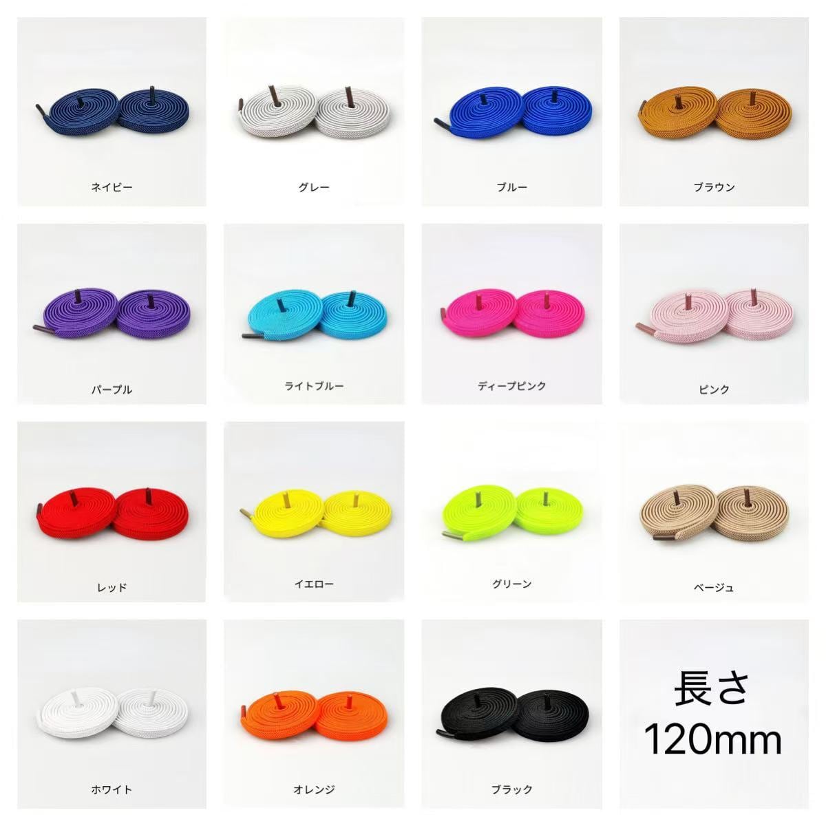 カラフル 靴紐 ひも 靴ひも くつ ひも 平型 全15色 長さ約120cm スニーカー くつひも