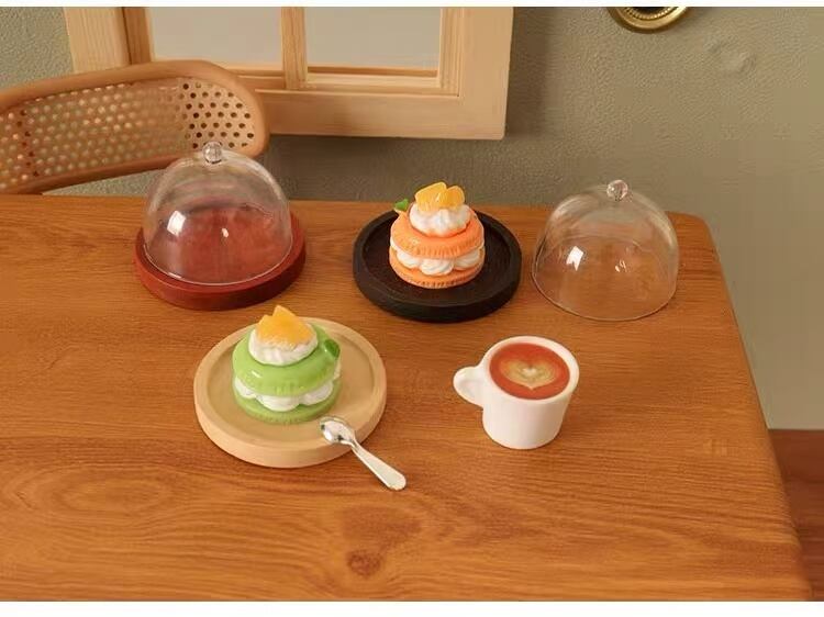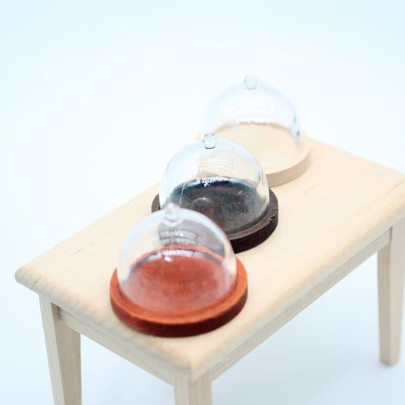 ミニチュア 透明ケーキドーム(カバー付きケーキスタンド)1セット 全3色 手のひらサイズでかわいい!ケーキ風ドームスタンド カバー付きスタンド ミニサイズ 食品模型 ミニチュアディスプレイ用品 樹脂製ケーキスタンド 撮影小物