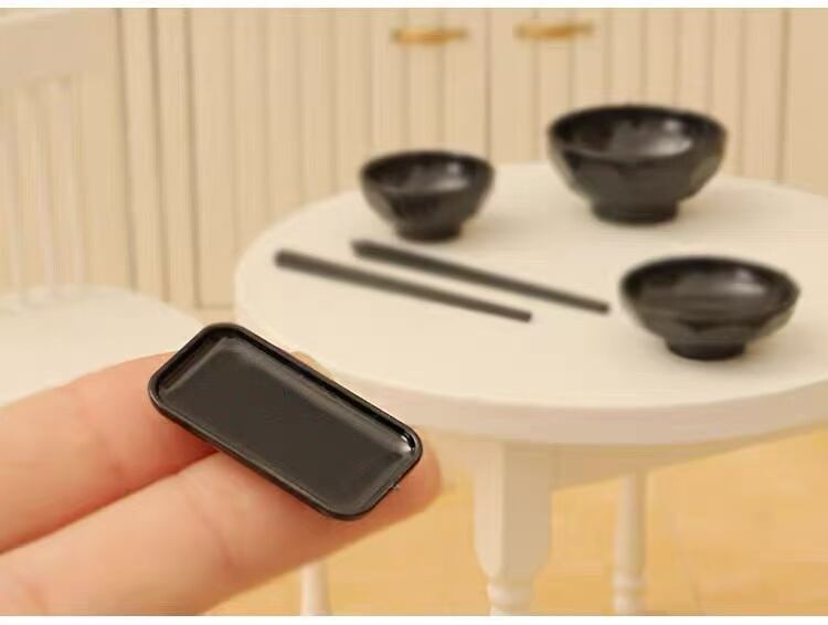 ミニチュアドールハウス用 和風食器5点セット 箸 お椀 お皿セット 黒 ドールハウスお碗 お皿 お箸 小さな食器 マイクロサイズのプレート ドールハウスのテーブルウェアアクセサリー