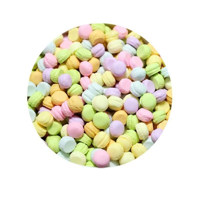 このセットにはランダムに選ばれた5個のマカロンケーキが含まれており、カラフルで可愛らしいデザインが魅力です。