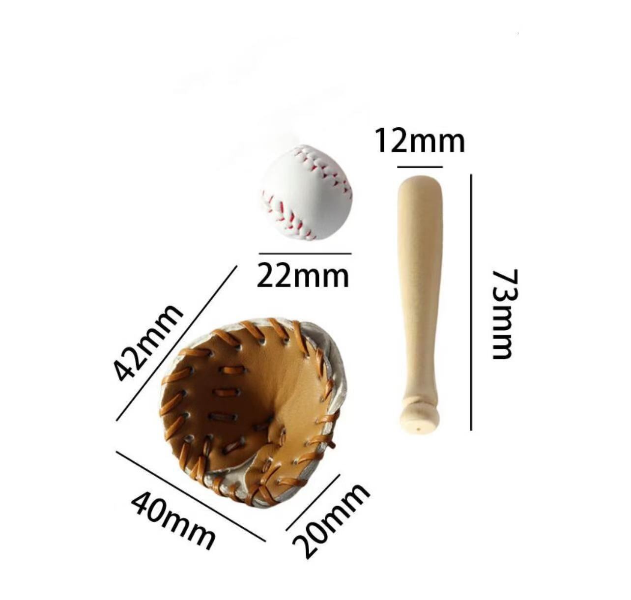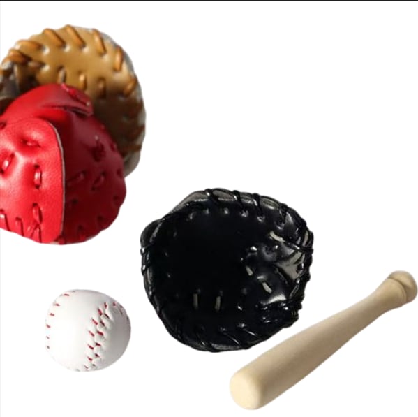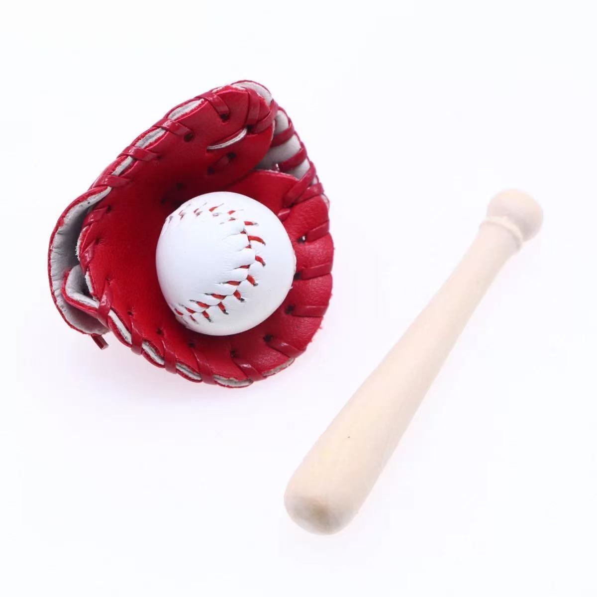 ミニチュア野球3点セット 全3色 コンパクトなサイズのミニチュア野球バット、グローブ、ボールがセット 小さな野球バットとボール ミニチュアスポーツコレクション ディスプレイ用野球セット