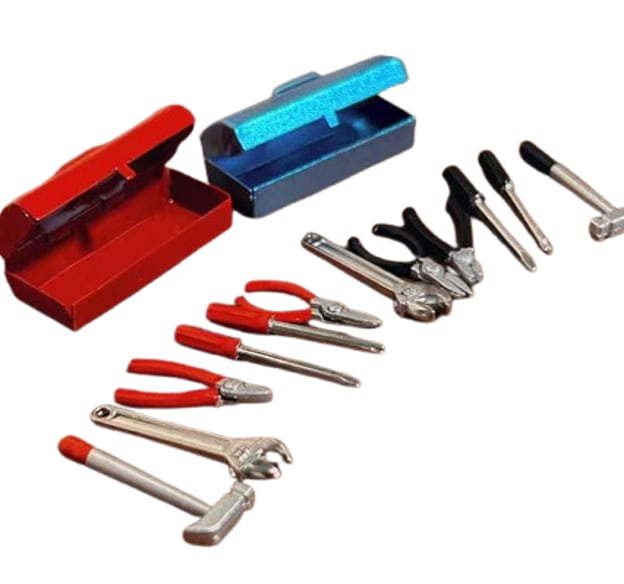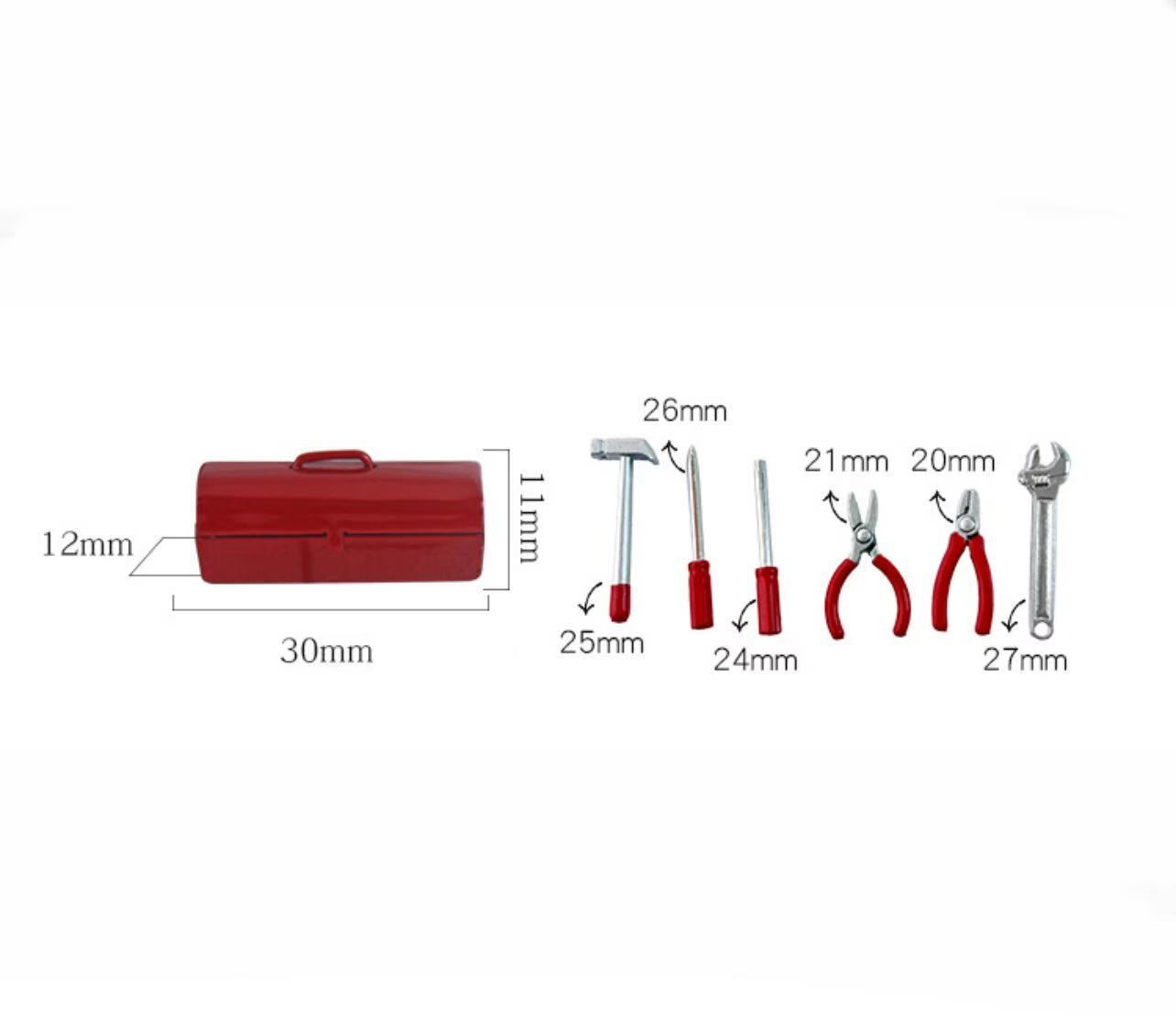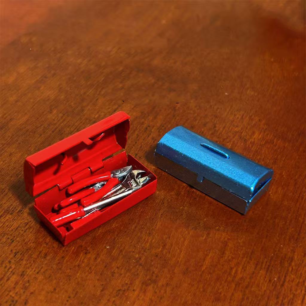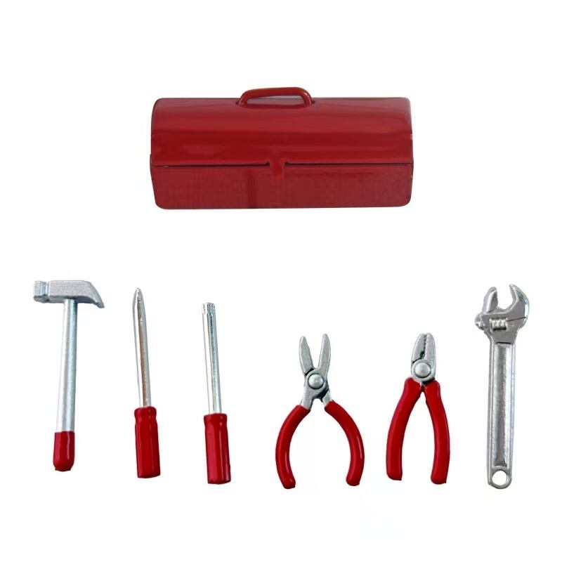 ミニチュア ドールハウス 工具箱7点セット 全2色 工具箱 ハンマー ペンチ プライヤー モンキーレンチ 工具ボックス