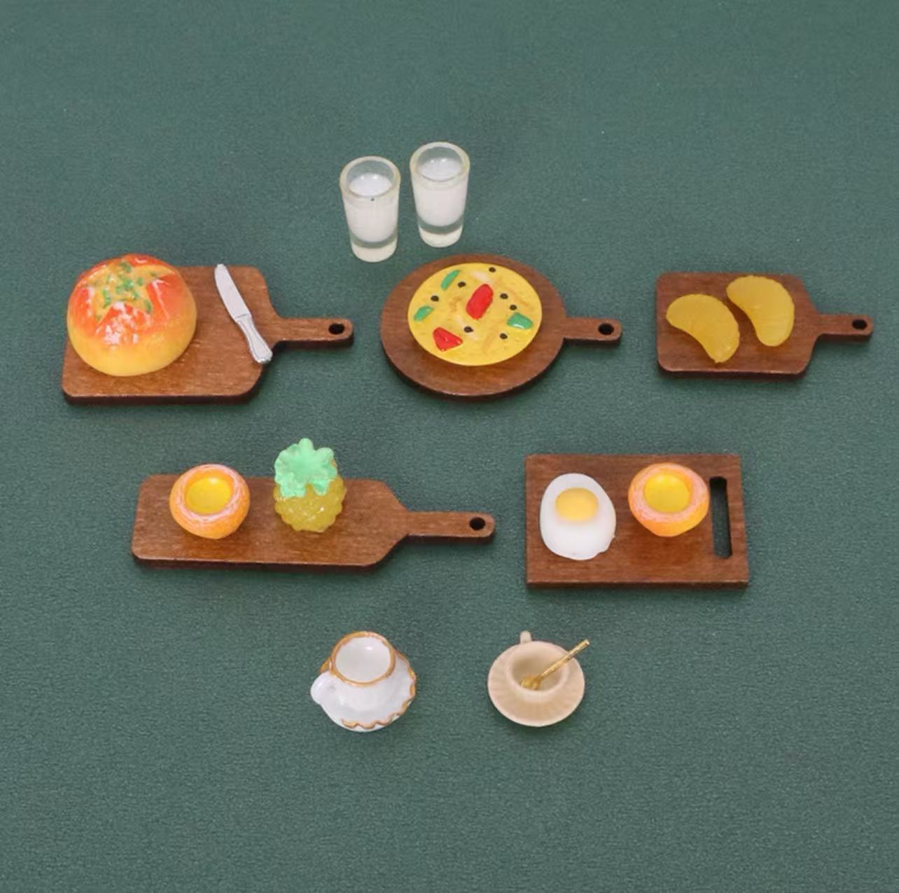 このミニチュアカッティングボードは、手のひらサイズでリアルなデザインで、ドールハウスのキッチンを素敵に演出します。