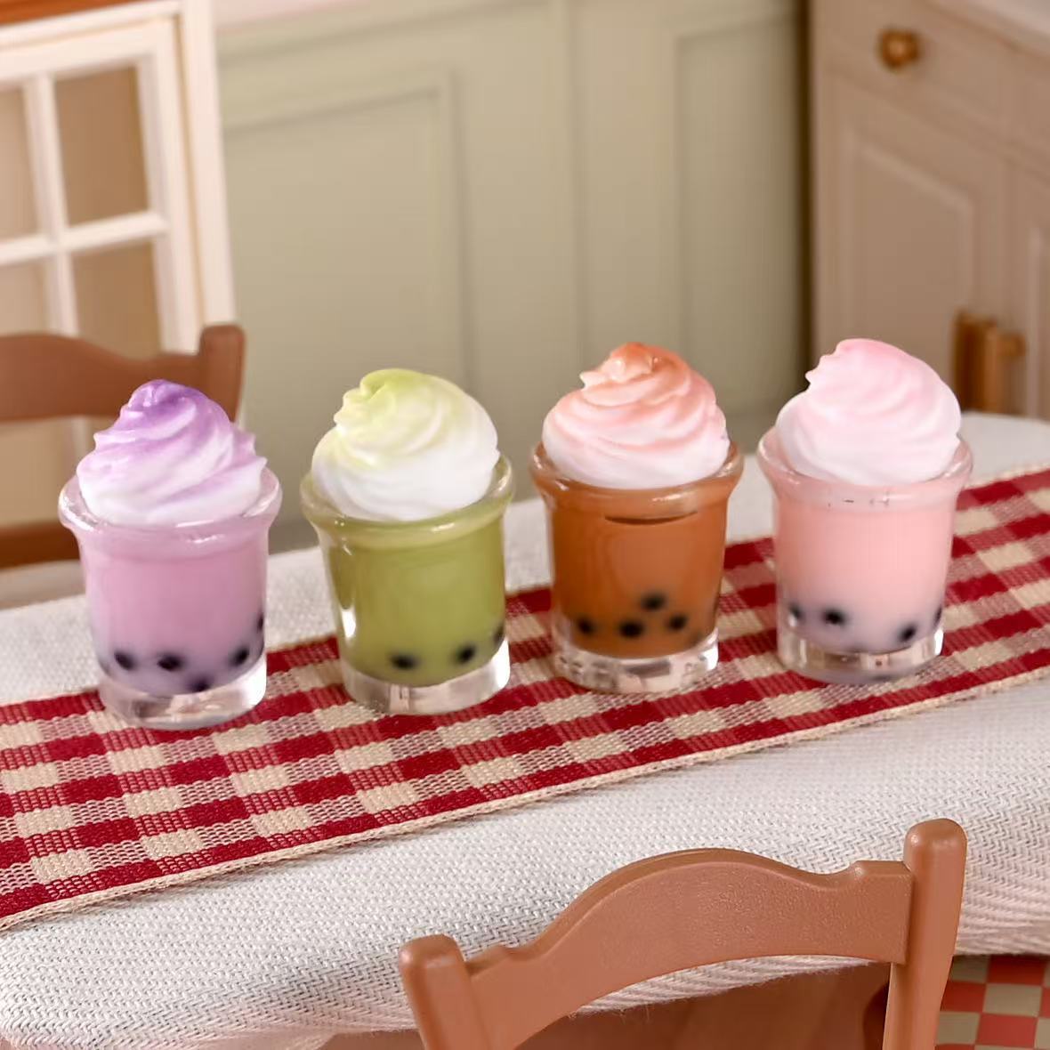 ミニチュア ドールハウス クリームたっぷりのタピオカミルクティー 1点 全4色 クリーム タピオカ デスクの小物 ドリンク ミニチュアコレクション おしゃれなドリンク 模型手のひらサイズカップ