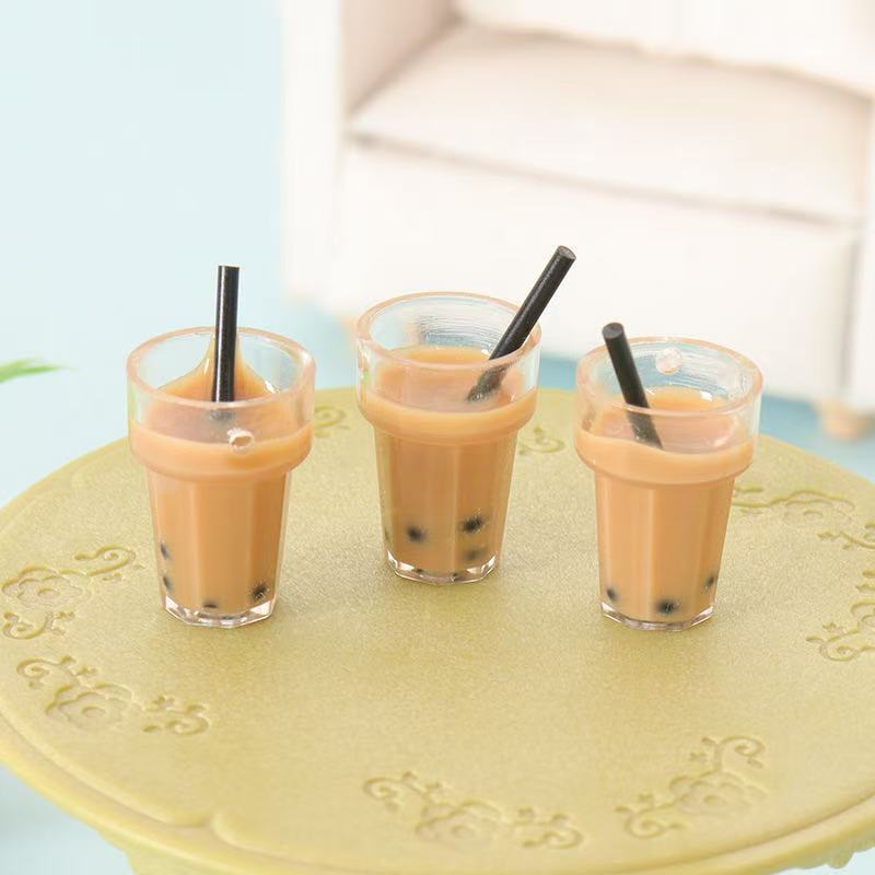 ミニチュア ドールハウス タピオカミルクティー 1点 タピオカ デスクの小物 ドリンク 飲料 ミニチュアコレクション