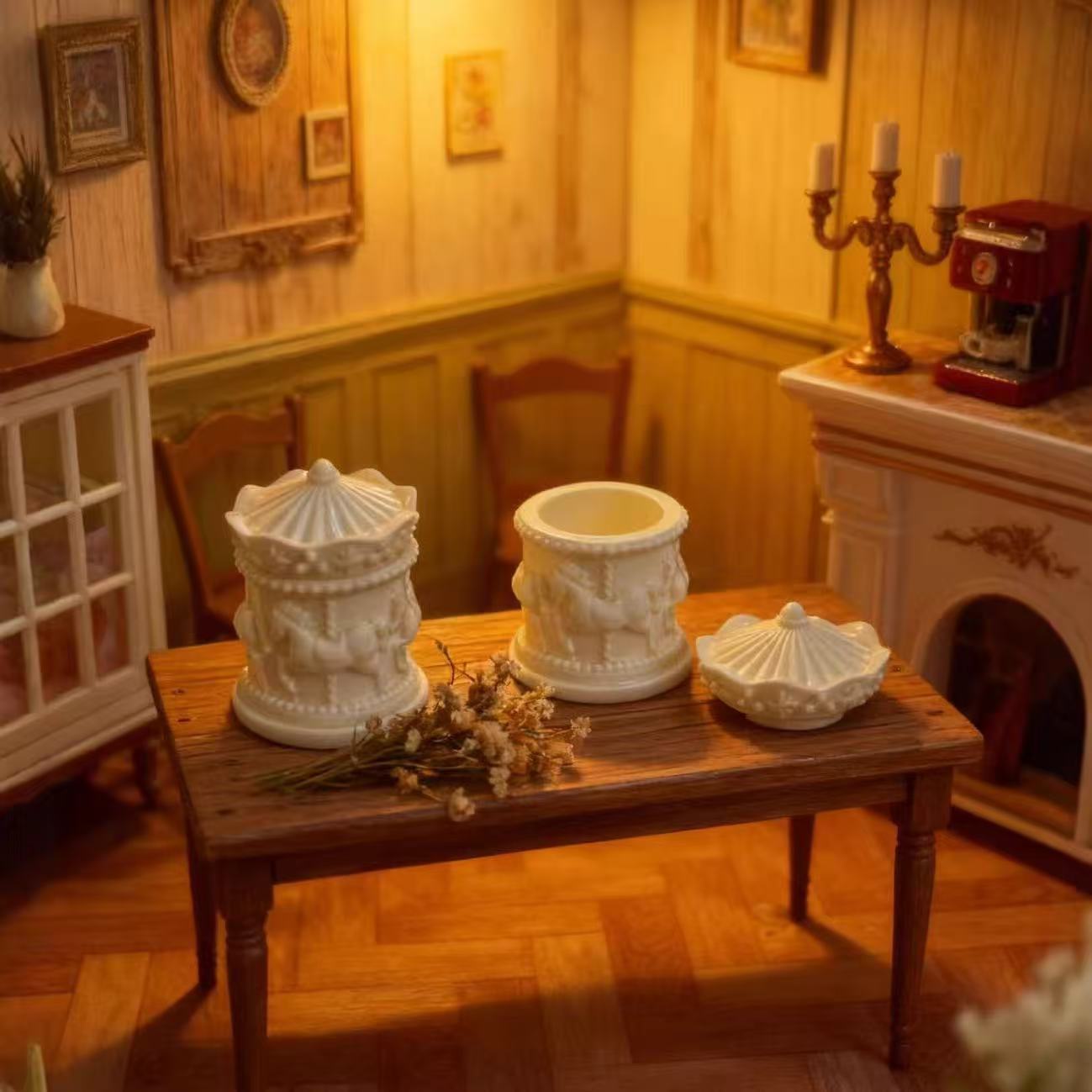 ミニチュア 木馬容器 蓋つき容器 1点 トールハウス用 容器 物入れ 可愛い デスクの小物 ミニチュアコレクション おしゃれな食器 模型手のひらサイズ