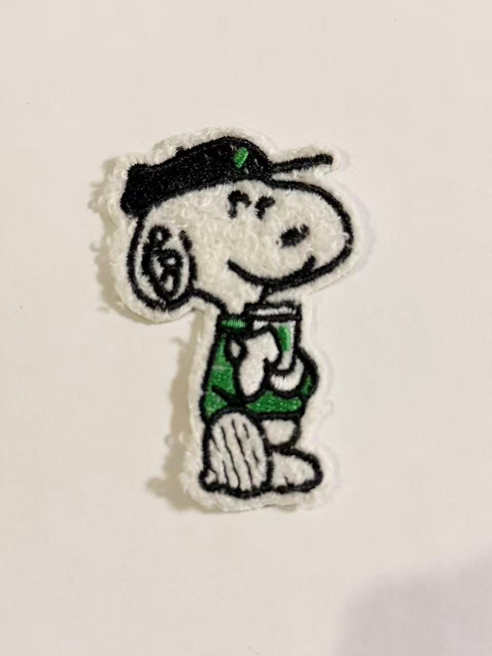 モコモコ カフェ風 スヌーピー 刺繍ワッペン 貼付けタイプワッペン