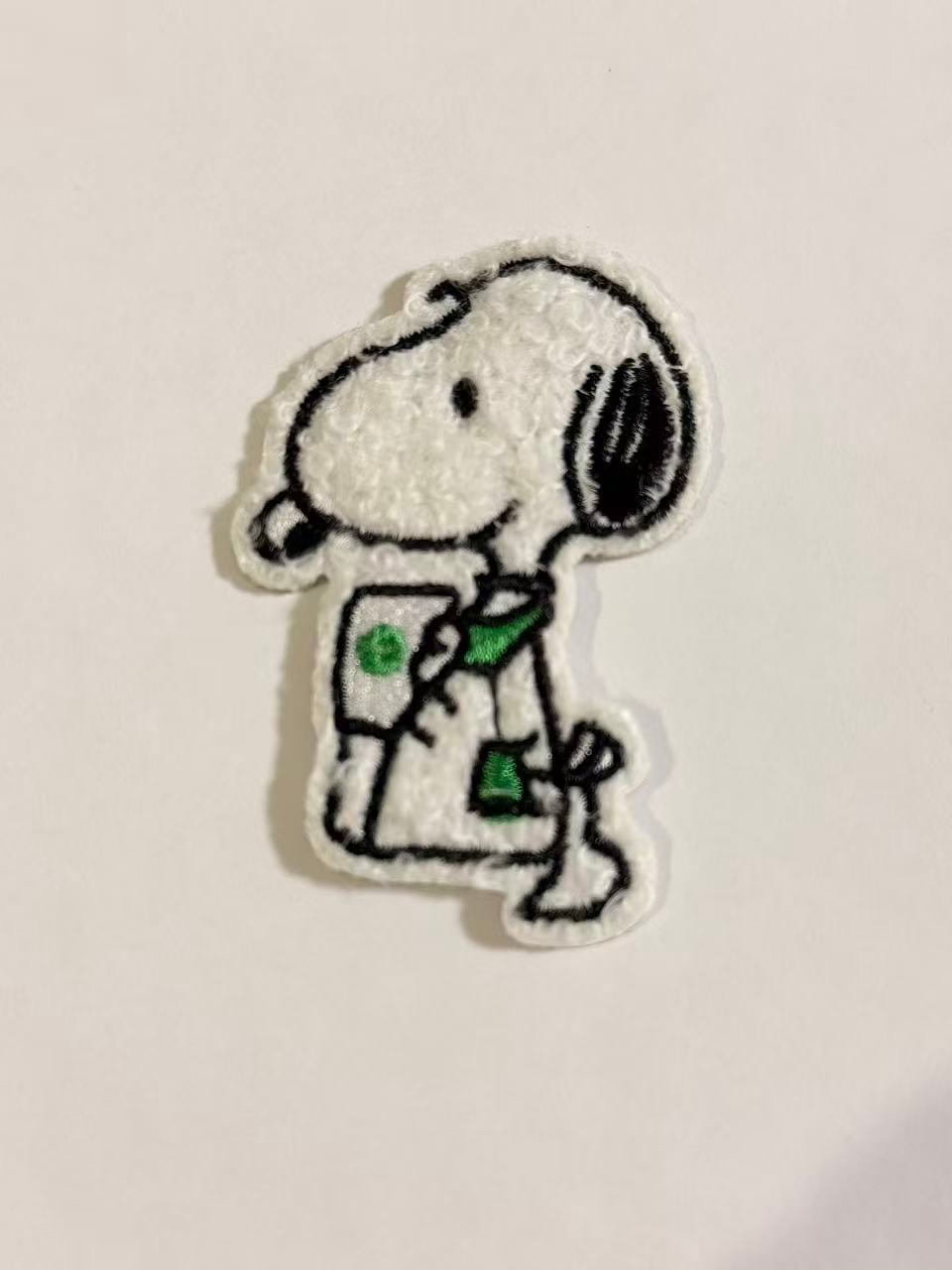 モコモコ カフェ風 スヌーピー 刺繍ワッペン 貼付けタイプワッペン