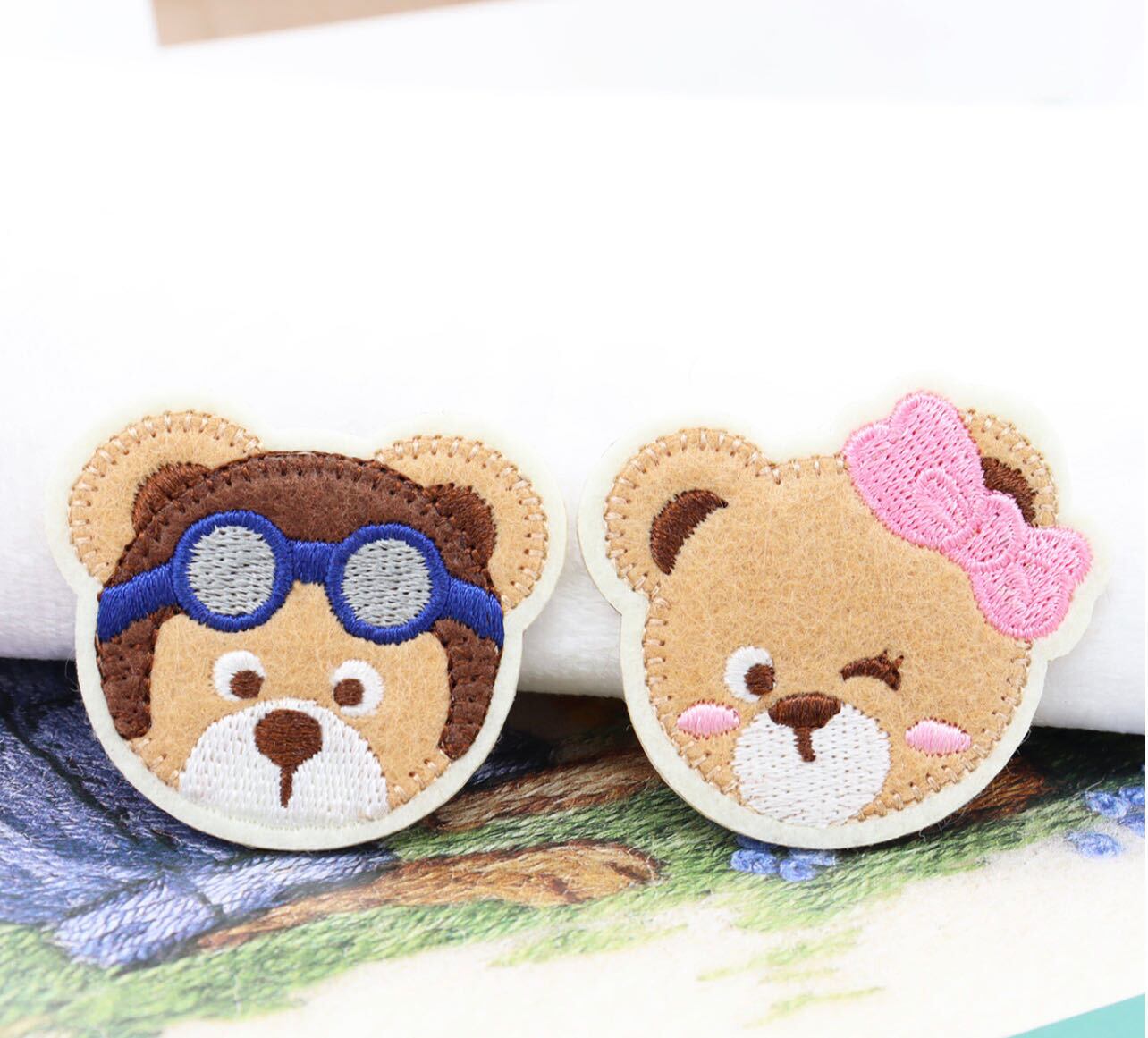 かわいい クマちゃん 熊ペア 刺繍 ワッペン 2枚セット かわいい おしゃれ デコレーション&リメイク 幼稚園 保育園