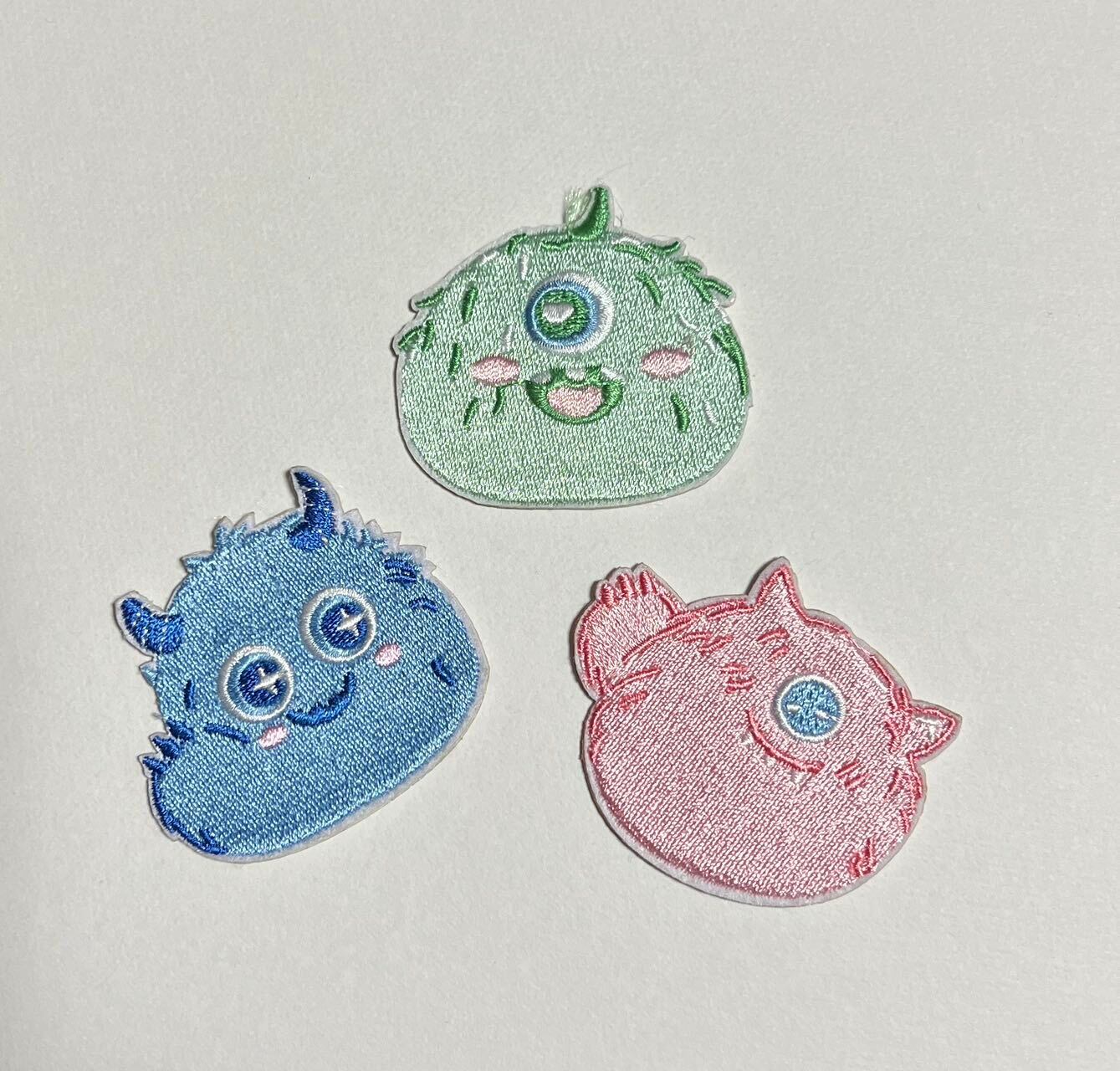 かわいい おばけ 怪獣 ピンク グリーン ブルー 刺繍 ワッペン 3枚セット かわいい おしゃれ デコレーション&リメイク 幼稚園 保育園