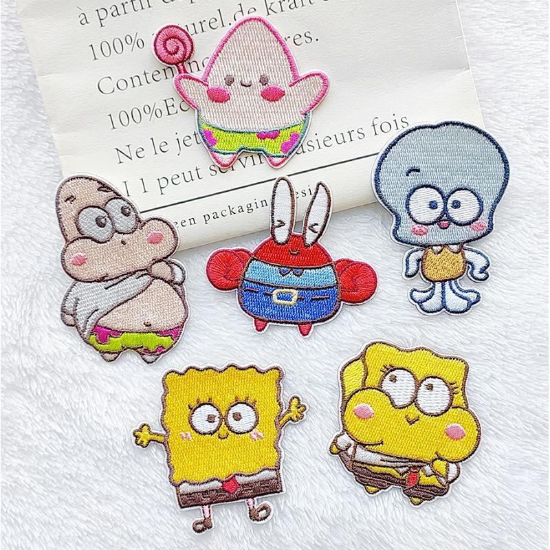 スポンジ ボブ ワッペン 刺繍 6枚セット かわいい 貼る 簡単 キャラクター 入園 入学 デコレーション&リメイク