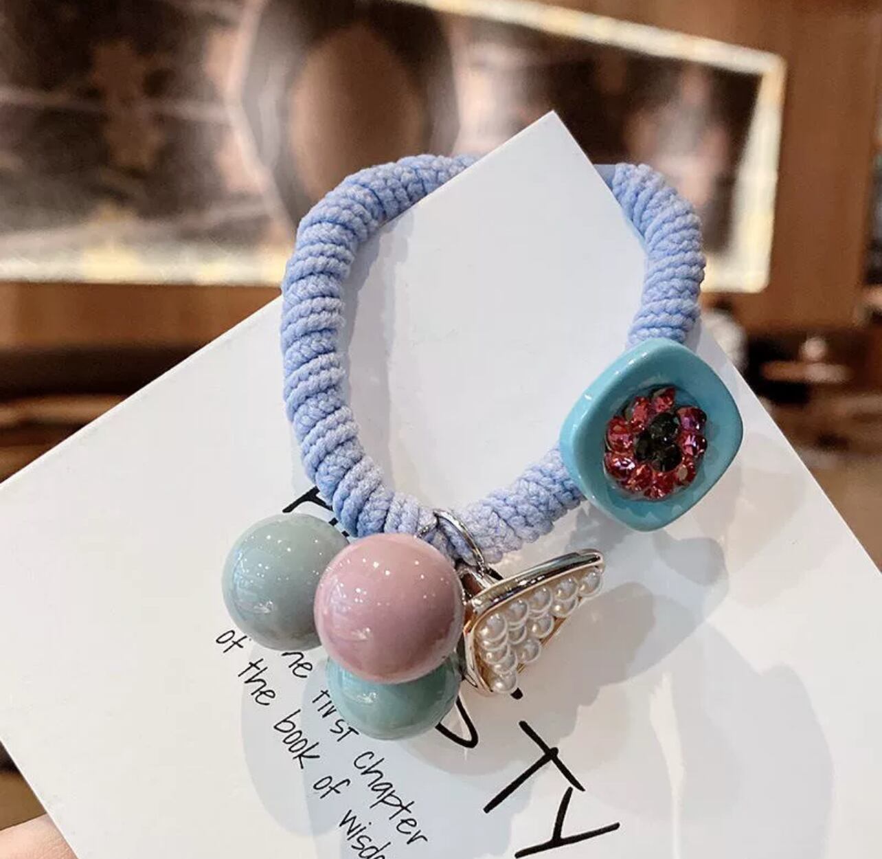 ボールフェイクパール ヘアゴム ヘアアレンジ 韓国 サテンフリル ヘアアクセサリー