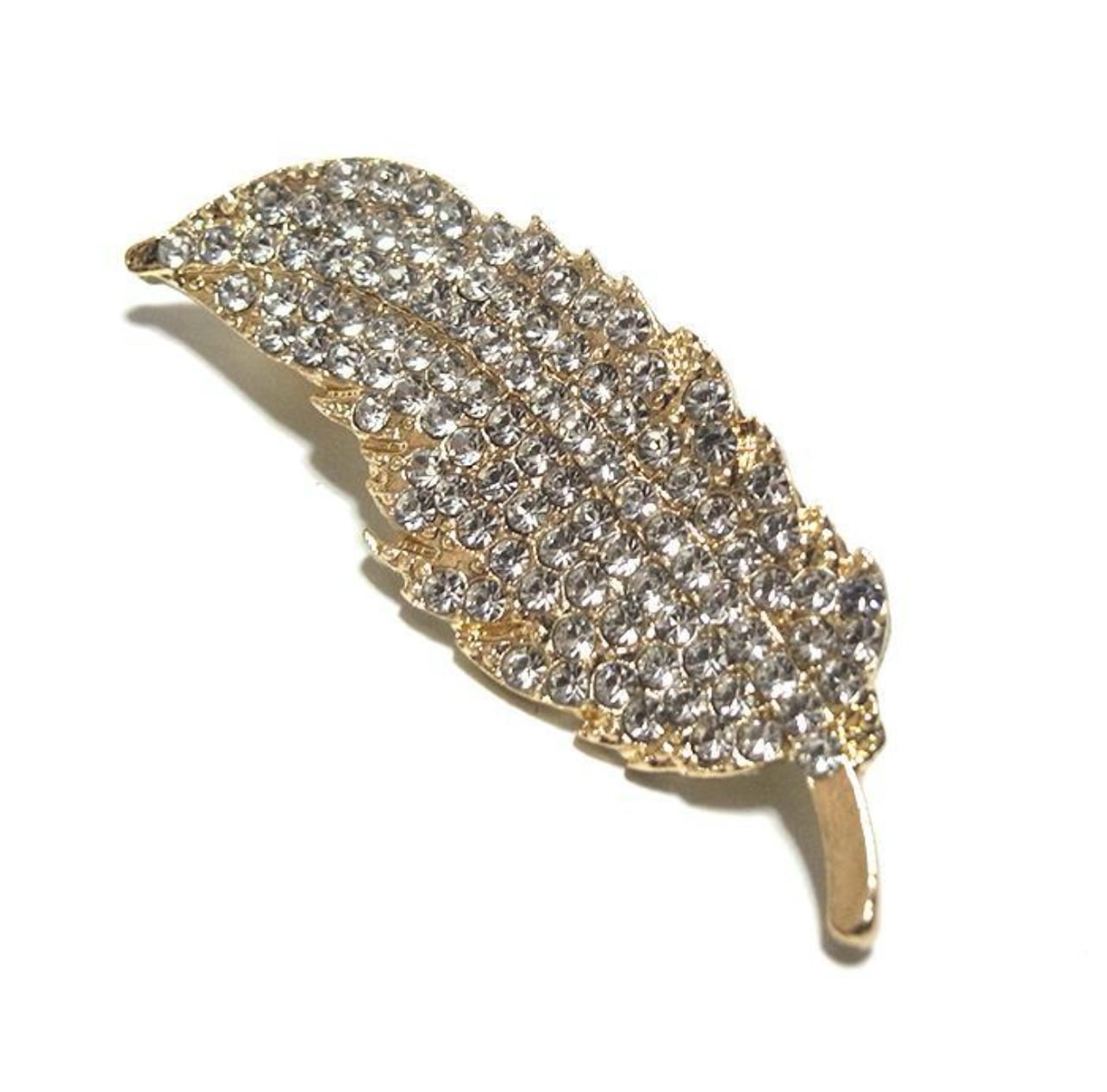 ブローチ 羽根 羽 フェザー ラインストーン ゴールド 羽根 高級 銅 真鍮 金メッキ