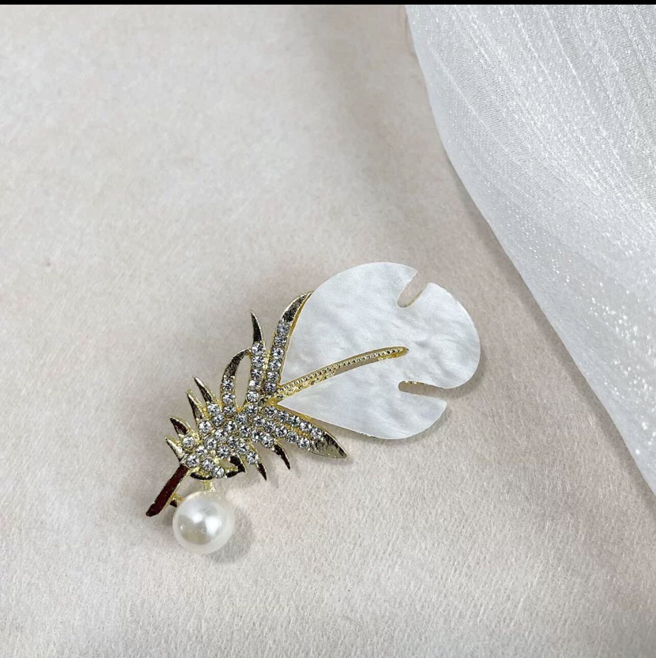 ブローチ ダイヤモンド ダイヤ パール リーフ 葉っぱ