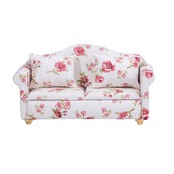 1:12スケールのミニドールハウスに華やかな雰囲気をもたらす、花柄の布アートソファー3点セットです。