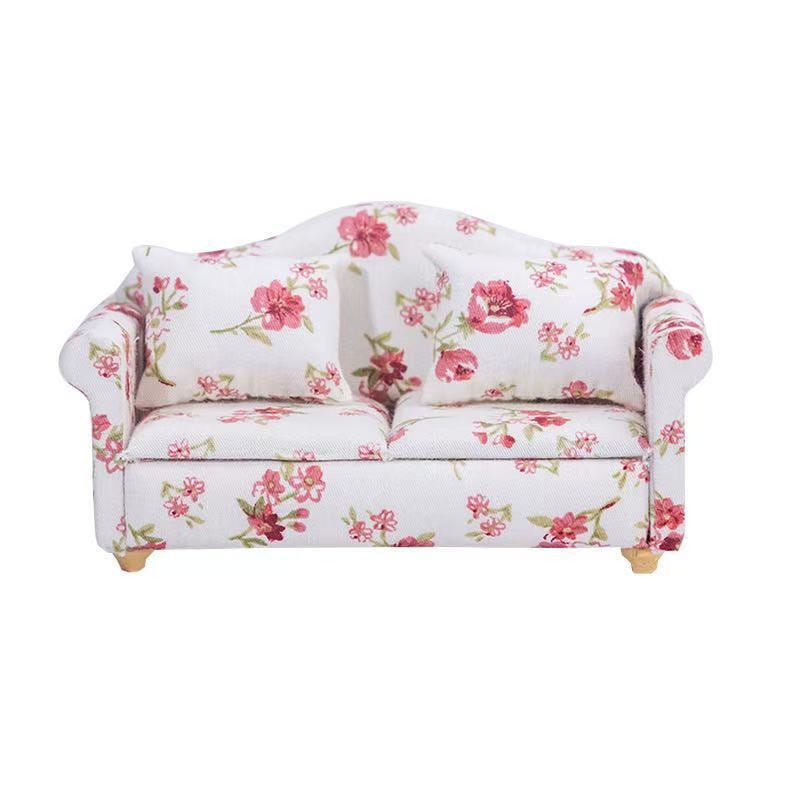 ドールハウス ミニチュア 花柄 布インテリアソファー 7点セット ミニチュアソファーインテリア 1/12 家具
