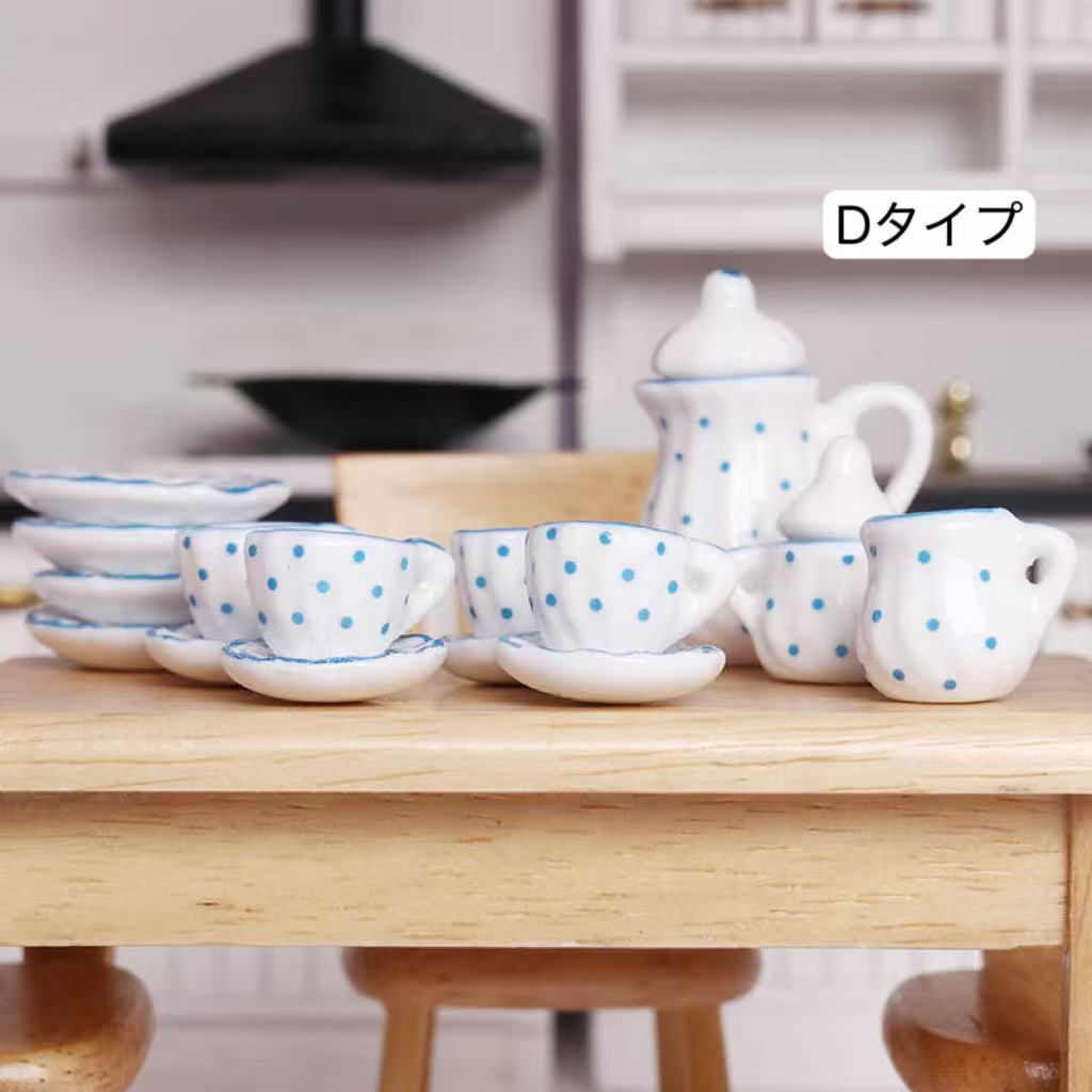 ミニチュア アフタヌーンティー15点セット 全 5種類 ミニチュアお皿 ドールハウス ミニチュア食器ミニチュアフラワーティーパーティーセット
